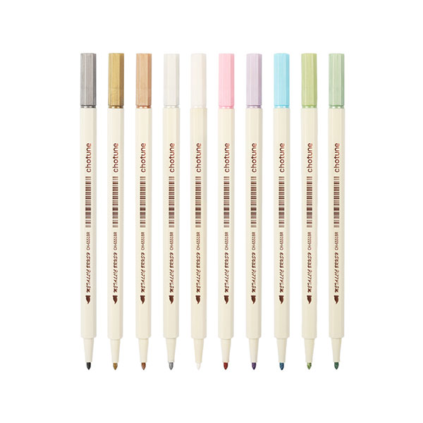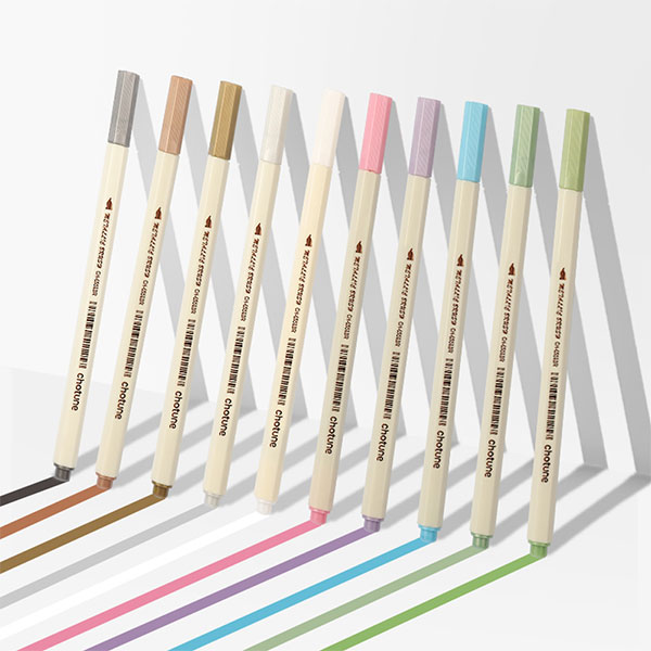 Marqueur métallique Chotune Hexagona Bar. La couture est métallique, colorée et résistante à l'eau. L'encre est écologique et non toxique, avec un bon pouvoir couvrant. Convient pour la création de comptes, la production de cartes de vœux, la signature commerciale, etc. Pointe souple, élastique et confortable. Nous proposons également des produits Chotune en stock pour mieux servir nos distributeurs. Vous pouvez remplacer la pointe vous-même. Pour plus d'informations sur le marqueur métallique Hexagona Bar, n'hésitez pas à nous contacter.
