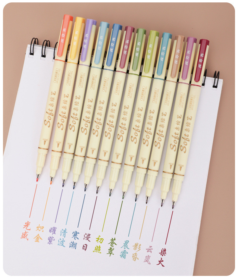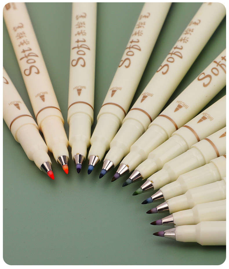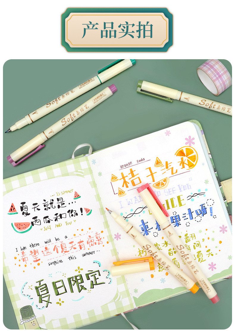 Pigment ink, plastic soft head, full and rich color. After a number of strict testing to ensure color, performance stability .Micro-hole pen tip, suitable for illustration, hand painting, DIY creation, hand account, design,animation and other color painting line when using.Environmental safety non-toxic.
