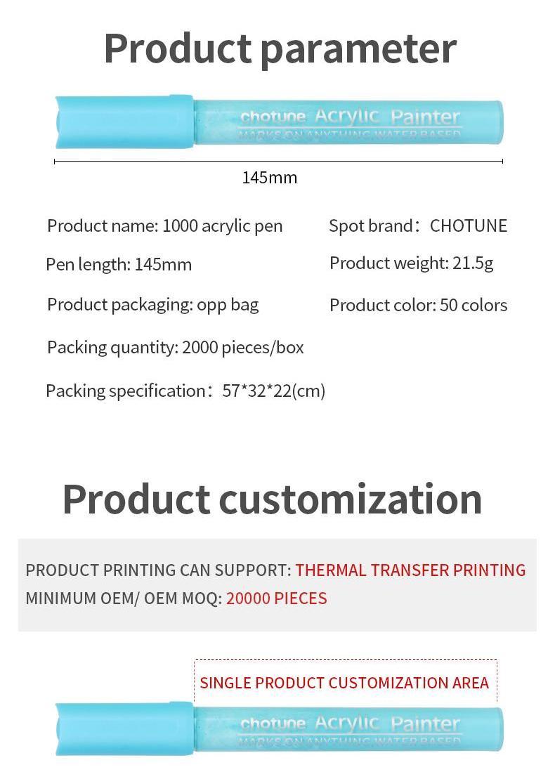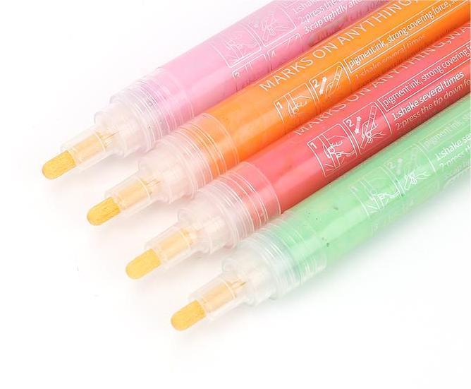 waterproof, light-resistant, good coverage in the dark surface, can be in paper, canvas, glass, ceramics, plastic, cloth, wood, metal and other materials surface writing.