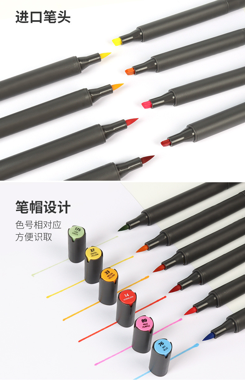 Double-ended design, square tip line width 6-7mm, easy to quickly color, the other end of the small tip easy to describe the details.