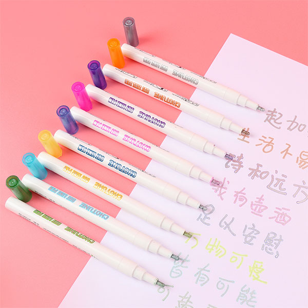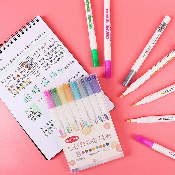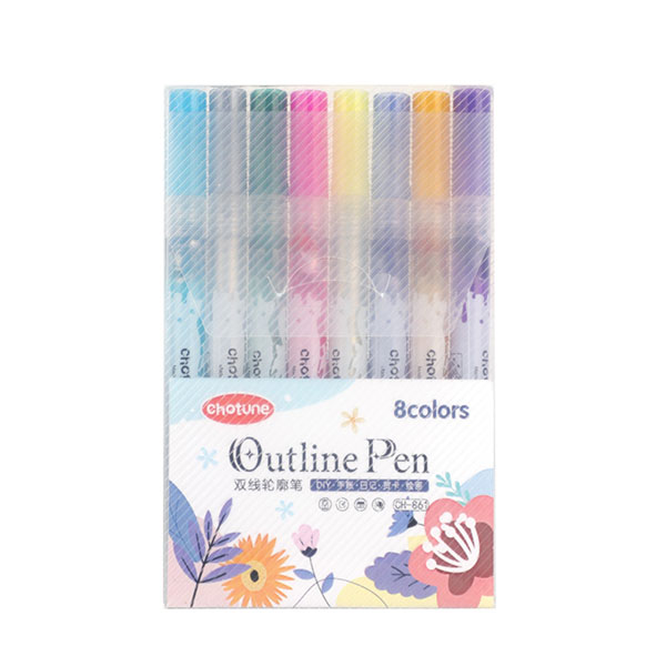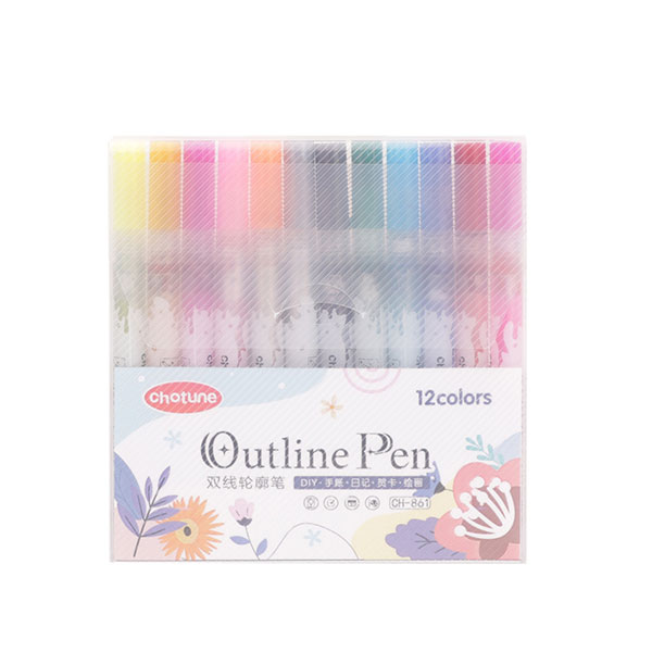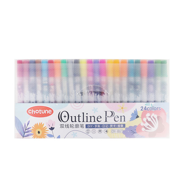 Chotune Dual Line Contour Pen.Outliner Pen Markers 24Colors White Self-outline Draw Pen Manufacturer | Chotune OEM Customer Logo.Black and Colourful Greeting Card Drawing DIY Painting.We also have chotune brand stocking to better serve our distributors.You can replace the nib yourself. For more information parameters about the Dual Line Contour Pen, you can contact us.