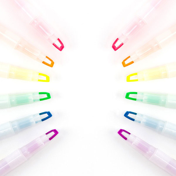 【PREIMUM QUALITY】 Unique mild color softly strokes paper from transparent tip without bleeding through the page, useful for broad highlighting or fine underlining. Mild water resistant pigment ink is translucent and excellent for layering, employing visible chisel tips for hand lettering and creative applications.