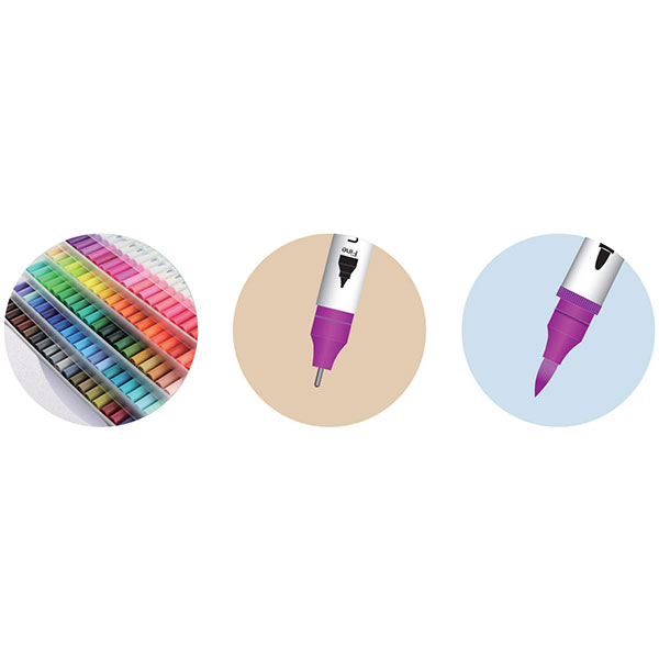 【ACCURATE & DURABLE】Dual tip brush pens are designed with 0.4 mm (1/64 inches) fine tip and 1-2 mm (3/64 - 5/64 inches) brush tip (not real brush, soft felt tip, have a soft head effect). Each pen with different thickness shape allows you coloring and writing for at least 300 yards.No more struggling with hard, inflexible pens that might destroy all the fun of coloring.