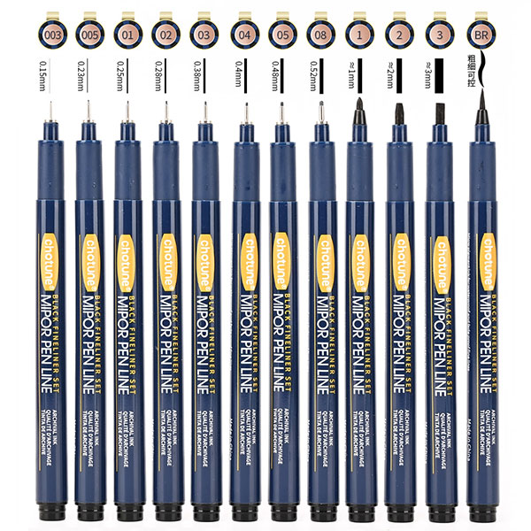 Chotune Blue Barrel Needle Marker with Sakura Pen. Customized Logo Fineliner Pen|OEM|ODM.12 Size - Precision Multiliner Fine Point.Pigment Ink,a variety of width,waterproof and UV-resistant.Suitable for sketching,marking,daily writing,etc.We also have chotune brand stocking to better serve our distributors. For more information parameters about the Black Needle Marker Pen, you can contact us.